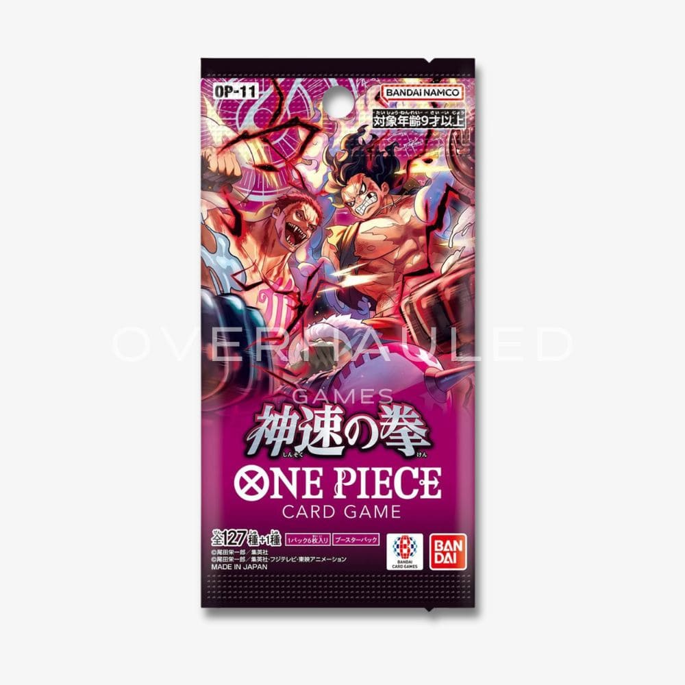 Set sail for exhilarating battle with OP-11: A Fist of Divine Speed, a dynamic Japanese booster pack from the One Piece Card Game series released on March 1, 2025. This expansion brings fresh energy to your decks with a mix of influential characters and strategic depth inspired by the Whole Cake Island and Fish-Man Island arcs.