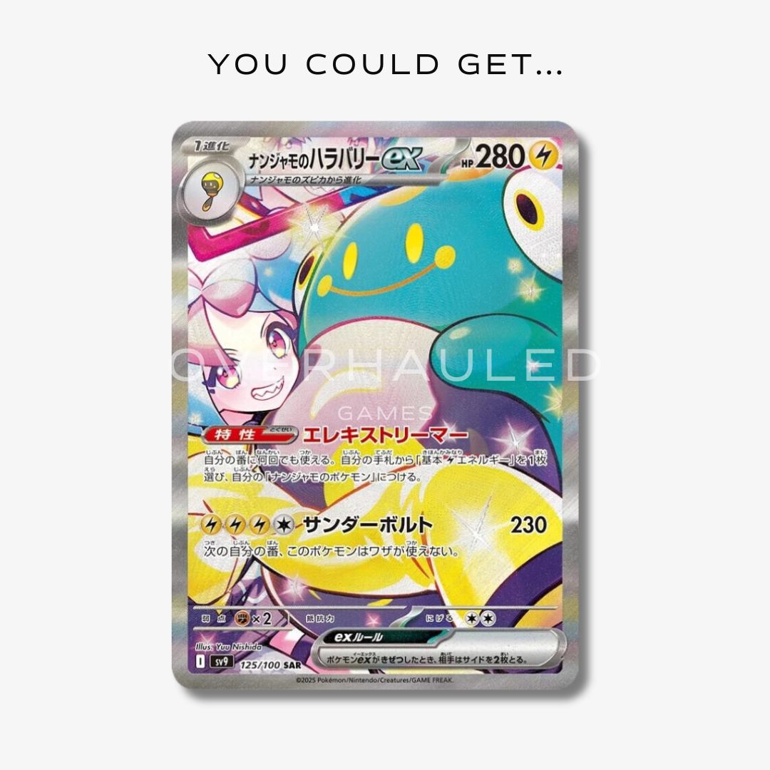 The Pokemon – Battle Partners – SV9 – Japanese Booster Pack is an exciting expansion in the Scarlet & Violet series of the Pokemon Trading Card Game. This set brings back the iconic “Owner’s Pokemon” mechanic, featuring Pokemon associated with renowned Trainers. Fans can look forward to seeing Pokemon like Iono’s Bellibolt ex, N’s Zoroark ex, Lillie’s Clefairy ex, and Hop’s Zacian ex, among others.