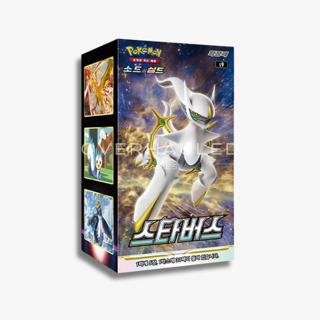 Unleash the power of legends with the Pokémon Star Birth Korean Booster Box! As the ninth expansion of the Sword & Shield series, this set features incredible Pokémon V and VSTAR cards, including the mighty Charizard VSTAR and the divine Arceus VSTAR.