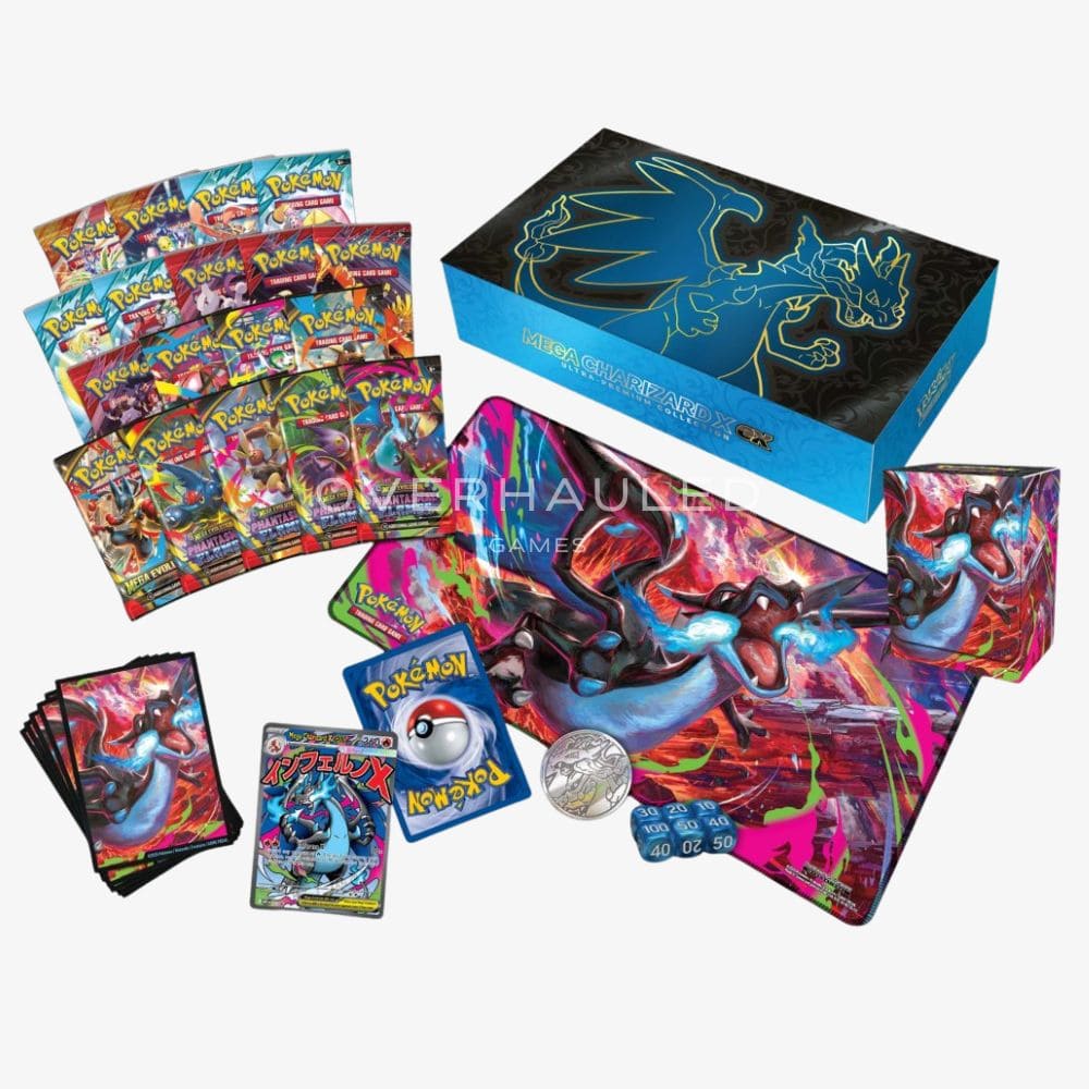 Beyond the cards, this premium set includes exclusive accessories—sleeves, a deck box, a playmat, and more—each adorned with striking artwork of Mega Charizard X, making it the ultimate collector’s centerpiece.