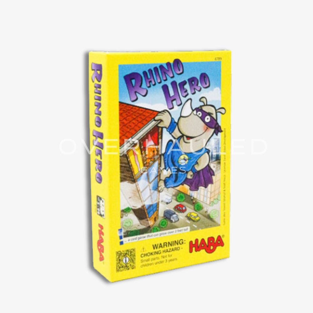 Players each start the game with five roof cards, and they take turns adding walls and roofs to a single building. On a turn, you first place walls on the highest floor, then you choose a roof card in your hand and place it on the wall. Each roof card bears markings that indicate where the next player must place walls on the card. In addition, some roof cards force a player to perform special actions, such as placing a second roof, changing the direction of play, or moving Super Rhino to a new location on the tower. Keep your hands steady!
